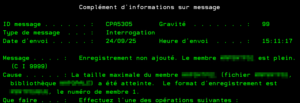 - Un bug qui n’aurait jamais eu lieu si les préconisations IBM avait été prises en compte : table SQL, taille en *nomax par défaut en SQL et reusedlt(*yes), par défaut en SQL.