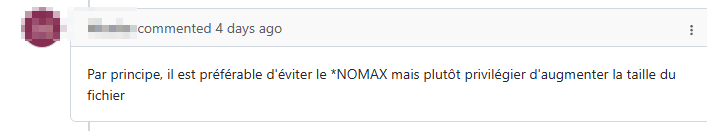 Sur le support de l’éditeur, je demande par courtoisie, si je peux passer la taille du fichier en *NOMAX.