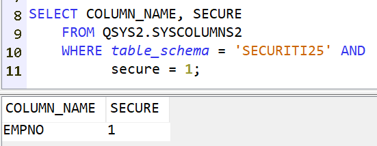 L’attribut est visible dans le catalogue DB2 : QSYS2.SYSCOLUMNS2, colonne SECURE => 0 ou 1