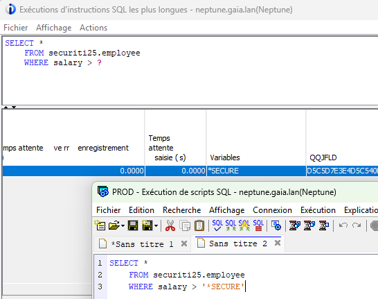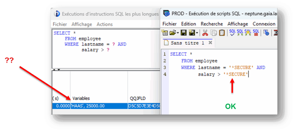 En effet, ce dernier contient de nombreuses informations nécessaires à l’adaptation du moteur SQL. Mais il contient aussi les données utilisées dans vos requêtes : constantes littérales, valeurs de comparaisons …