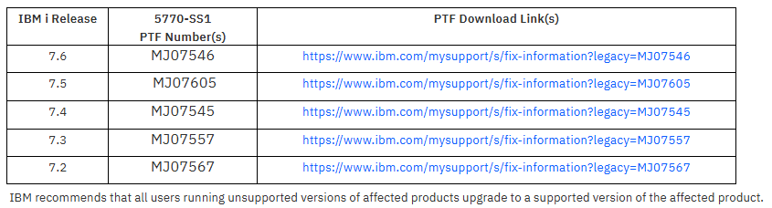 IBM a publié un correctif : https://www.ibm.com/support/pages/security-bulletin-ibm-i-affected-obtaining-information-without-proper-authority-cve-2025-36371